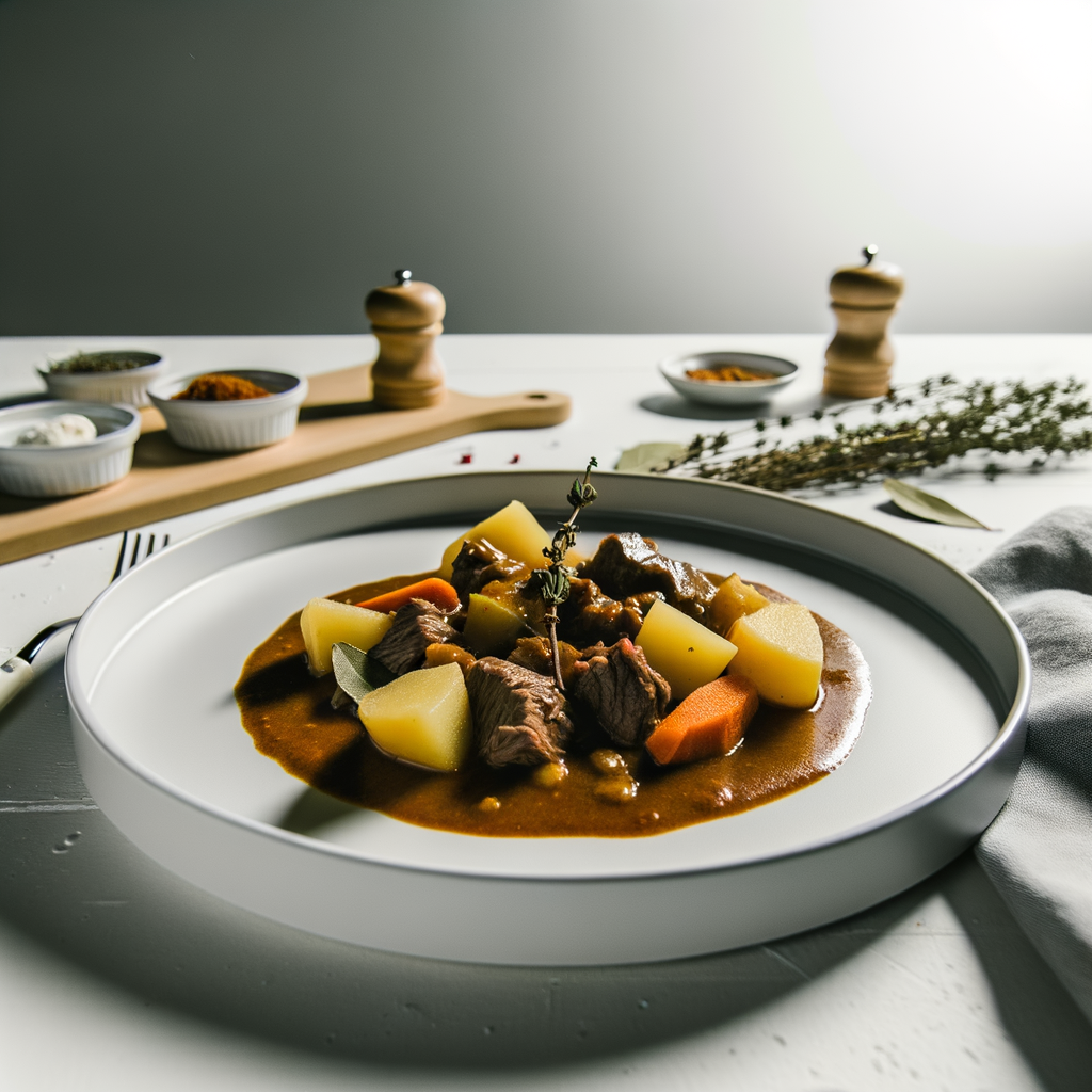 Serve this classic beef stew with some crusty bread for soaking up the broth. It's an ideal meal for gatherings or a comforting solo dinner, embodying the essence of home-cooked goodness.