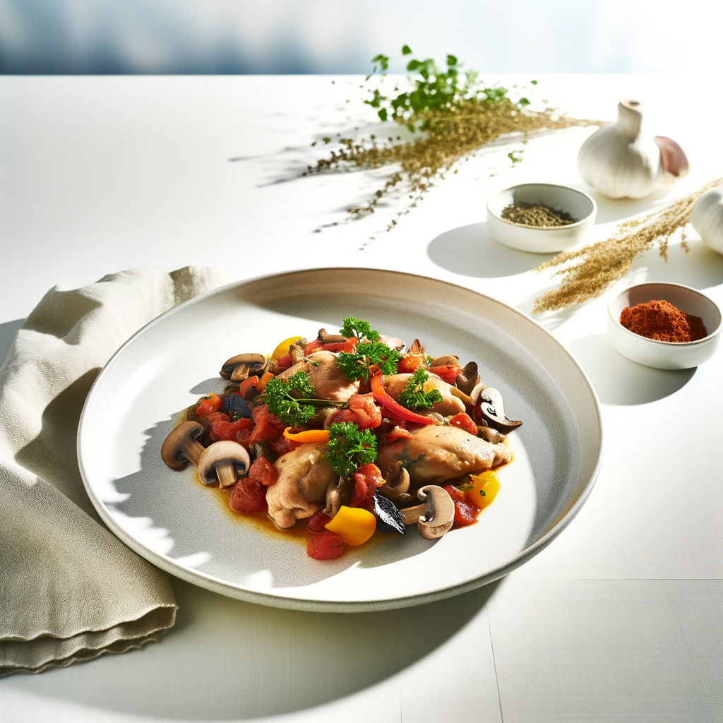 Experience the flavors of rustic Italian cuisine with a traditional chicken hunter-style dish. This hearty meal combines juicy chicken pieces with a rich tomato sauce, bell peppers, and aromatic herbs, creating a delightful blend that’s both comforting and flavorsome.