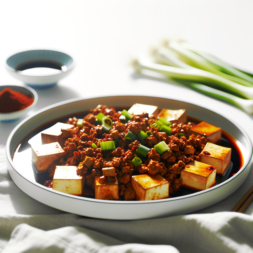 Sizzling sounds and glossy red-brown sauce cling to tender cubes of silken tofu and savory minced pork, with a numbing citrusy heat from toasted Sichuan peppercorns and a bright finish from scallions. The contrast of silky tofu and slightly crisped edges where it meets the hot wok makes every bite texturally satisfying.