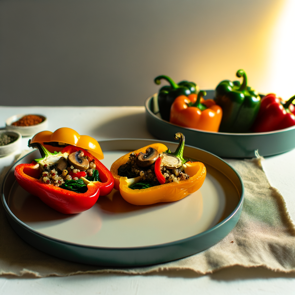 Bright and colorful, these stuffed bell peppers offer a visually appealing presentation that promises flavor with every bite. The savory blend of mushrooms, spinach, and quinoa creates a satisfying and hearty filling, perfect for a nutritious meal. Baking them enhances their sweetness, complementing the earthy and savory filling.