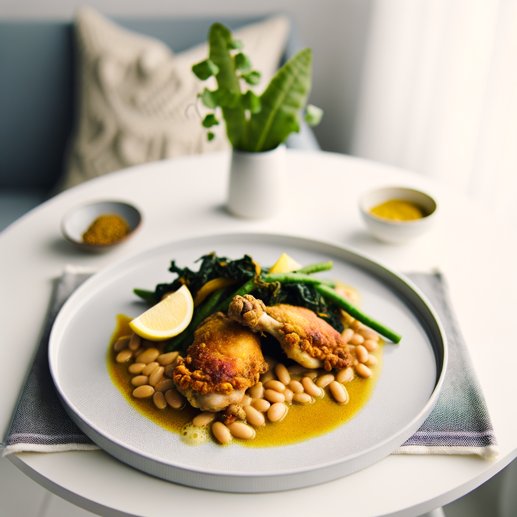 Golden, crackling skin gives way to juicy meat while a silky pan sauce brightened with lemon and mustard coats tender white beans and wilted greens. The contrast of textures—crispy exterior, creamy beans, and slightly bitter leafy greens—makes each bite interesting and satisfying. This recipe uses a single skillet for most of the cooking, so cleanup is minimal and the sauce builds flavor from the same pan used to crisp the meat.