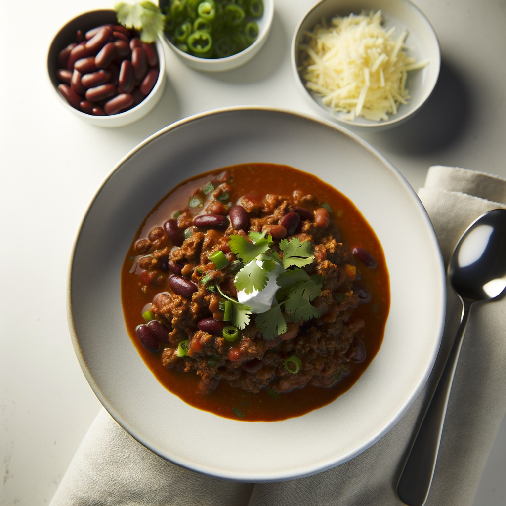 Serve alongside cornbread, over rice, or topped with shredded cheese, sliced green onions, and a dollop of sour cream for cooling contrast. This chili is freezer-friendly and reheats well—make a double batch for quick packed lunches or game-day feeding.